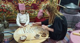 Devrekli minik eller mantı yapıp dolma sardı