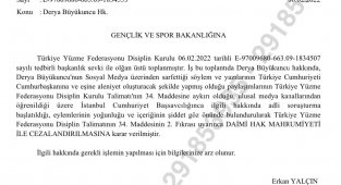 Türkiye Yüzme Federasyonu'ndan, Derya Büyükuncu'ya daimi hak mahrumiyeti